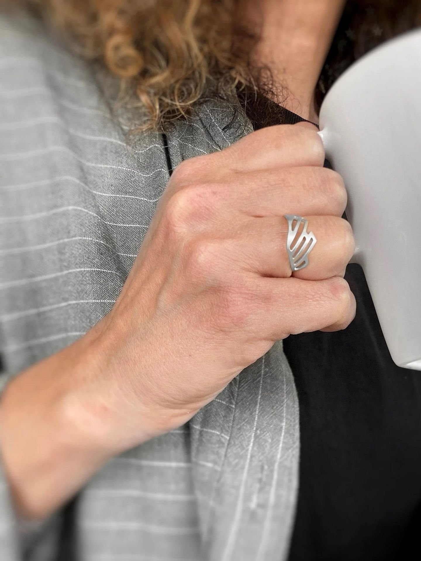 A modern ring that combines elegance and everyday style. Designed with a modern touch, it features a sleek, geometric shape inspired by the form of wings—abstract and artistic, yet simple to wear.