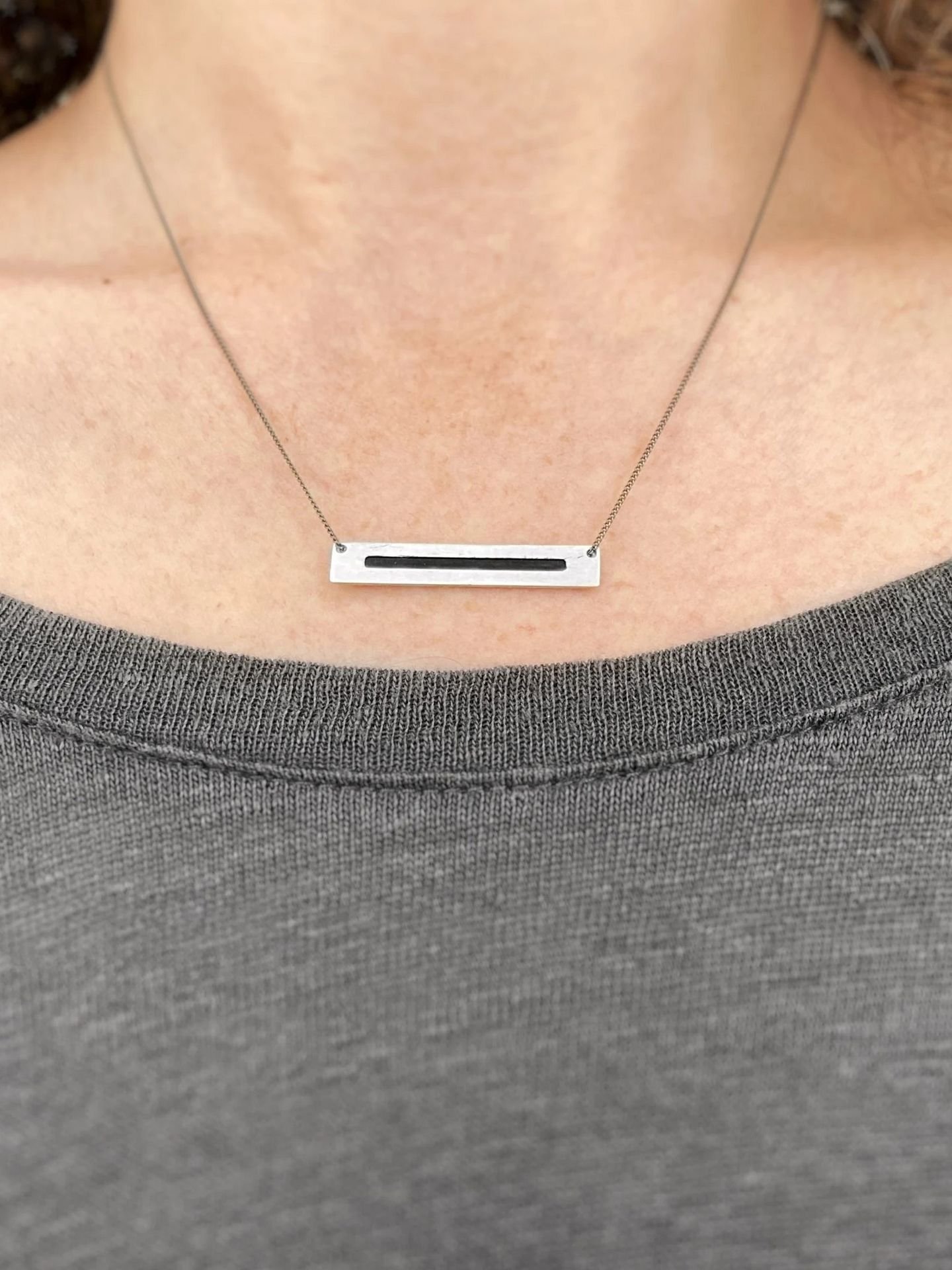 Geometric necklace featuring black oxidized details. Inspired by rain in abstract form, its minimalist design adds an edgy touch whether worn solo or layered. A modern, unique jewelry piece perfect for gifting or everyday wear.