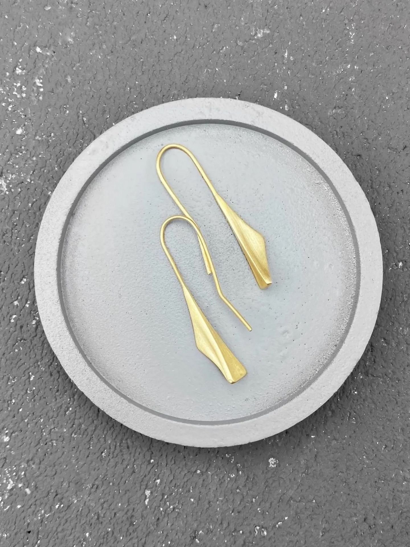 The aesthetics of this modern pair of threader earrings are striking and distinct, as the sculpted surfaces create a captivating visual impact. The edginess of its assymetrical design adds a touch of attitude and character. A versatile accessory complementing a wide range of personal styles and outfits.