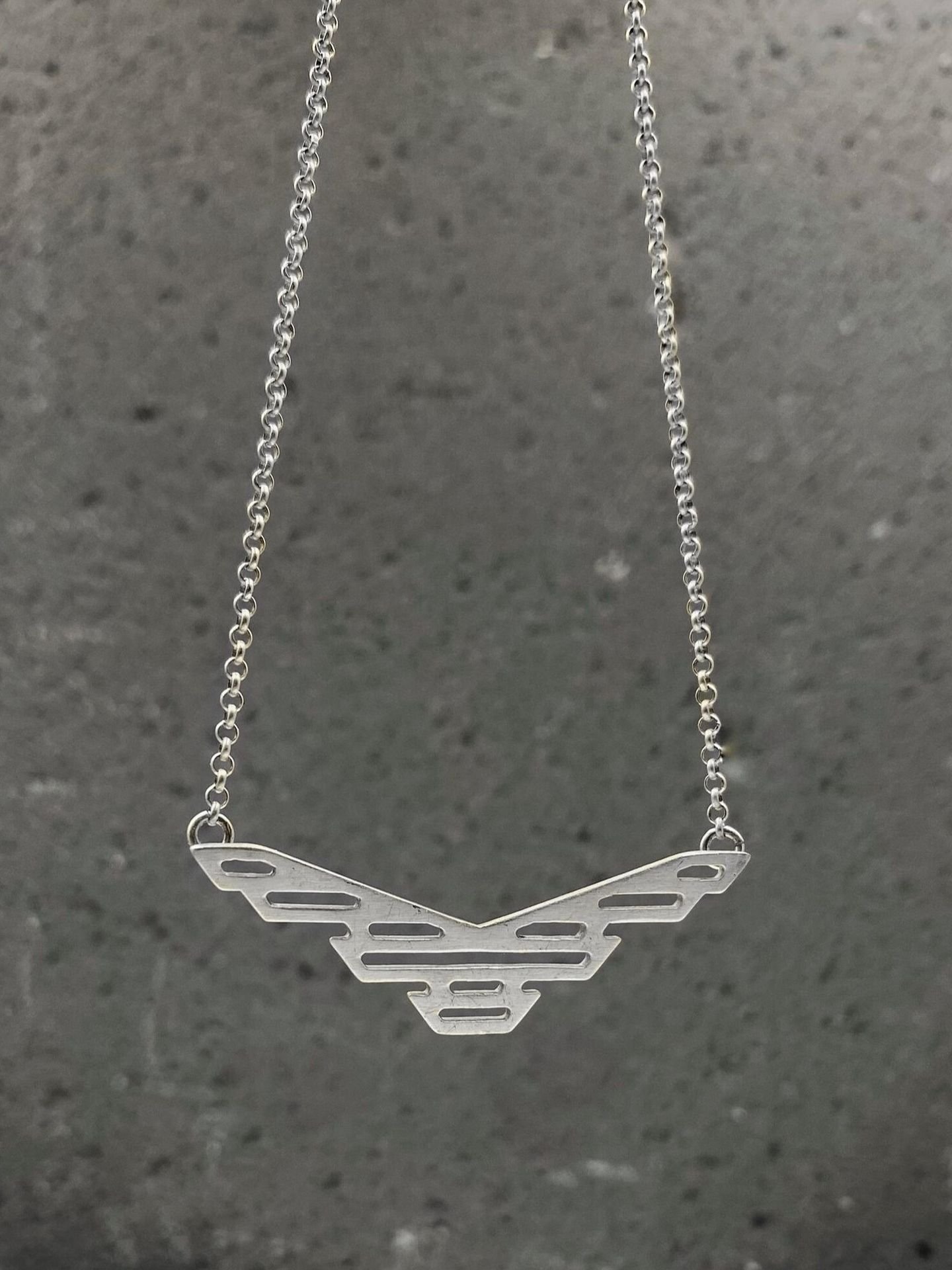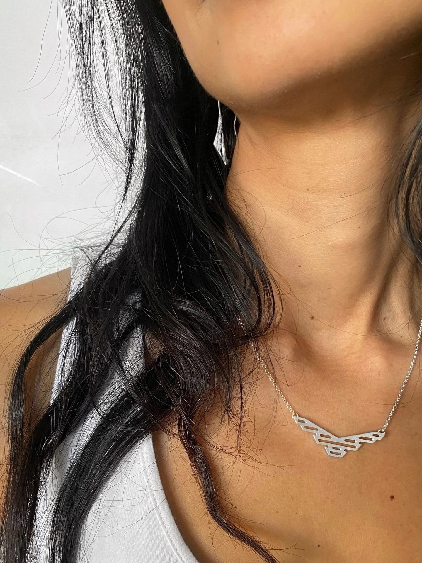 A modern necklace that combines elegance and everyday style. Designed with a modern touch, it features a sleek, geometric shape inspired by the form of wings—abstract and artistic, yet simple to wear.