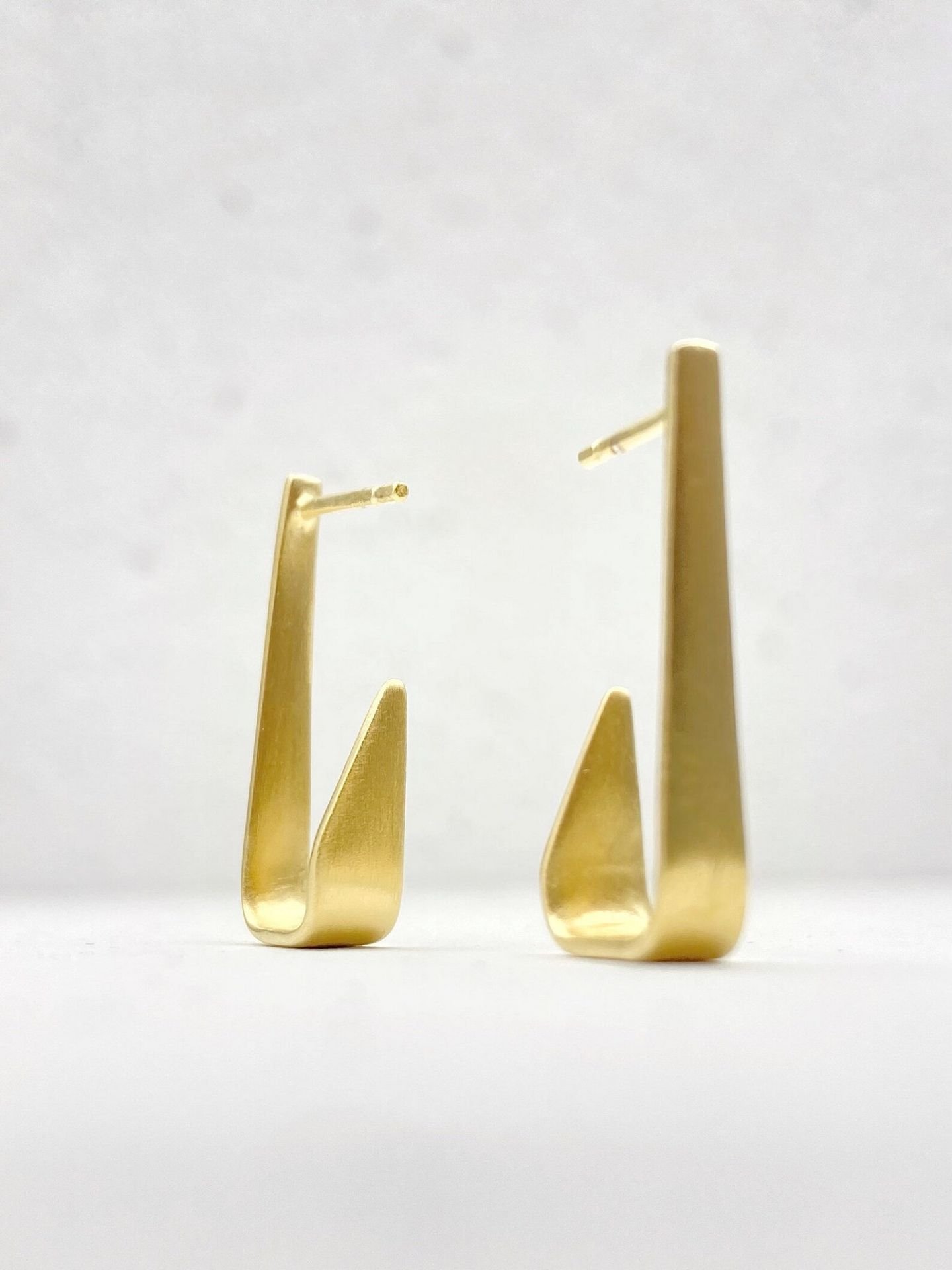 Versatile stud earrings that complement any outfit and are perfect for both everyday wear and special occasions. Their abstract geometric form adds a simple, yet thoughtfully unique touch to your style.